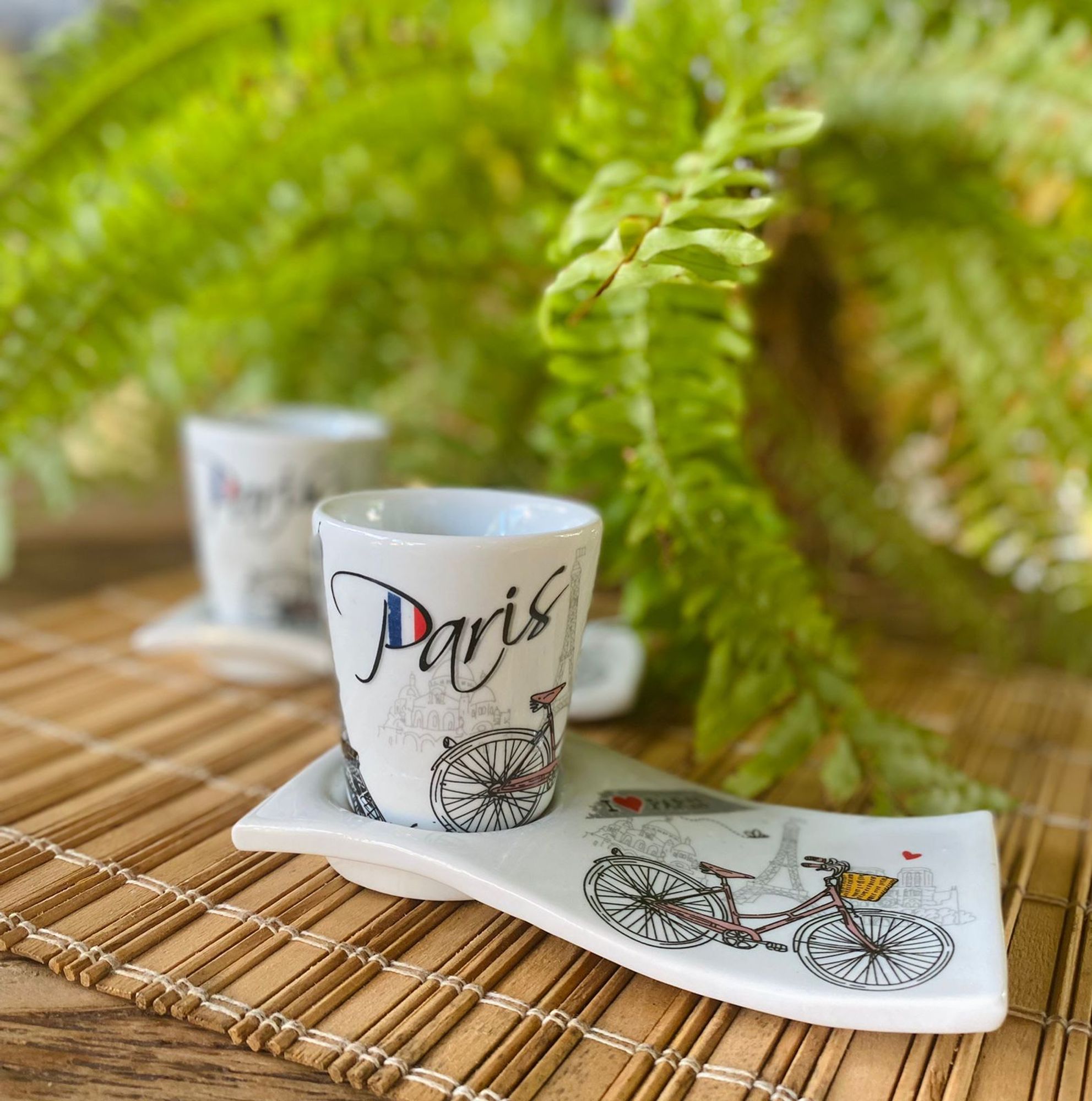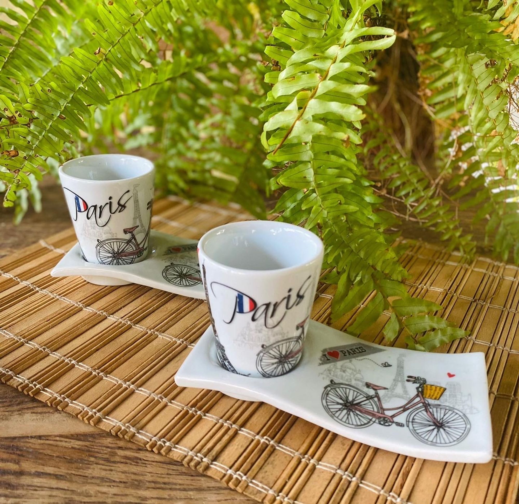 2 Kits Xícaras Mais Pratinhos Decorados Porcelana Café Paris