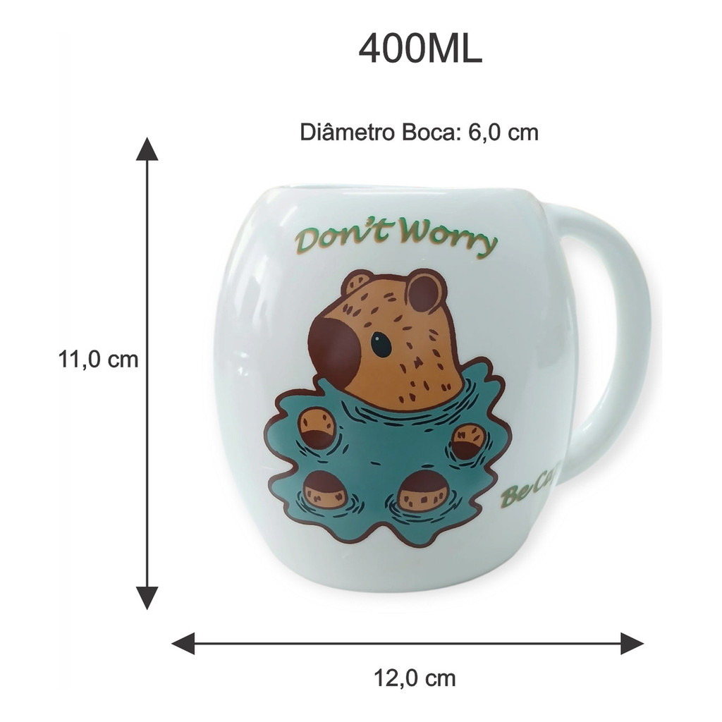 Transforme seus momentos de café em uma experiência única com a Caneca Capivara 400ml! Feita em porcelana premium, essa caneca combina design divertido, conforto e resistência para o uso no dia a dia.Com estampa charmosa da capivara – símbolo de calma e simpatia – ela é perfeita para quem adora unir praticidade e fofura. Ideal para cafés, chás, cappuccinos, chocolates quentes ou até para deixar sua mesa de trabalho mais alegre. Ótima opção para presentear amigos, familiares ou aquela pessoa especial que ama itens criativos. Detalhes Técnicos:Volume: 400 mlAltura: 11,0 cmLargura: 12,0 cmDiâmetro da boca: 6,0 cmMaterial: Porcelana de alta qualidadeAcabamento: Brilho impecável com estampa exclusivaGaranta já a sua e leve mais charme e descontração para seus momentos de pausa!