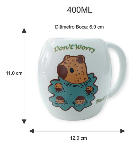 Caneca Capivara Divertida 400ml Porcelana Chá Café