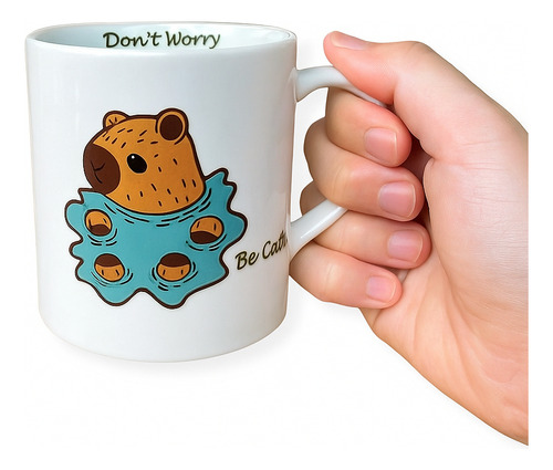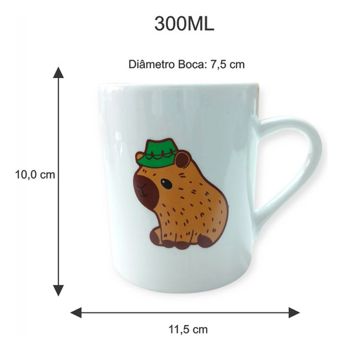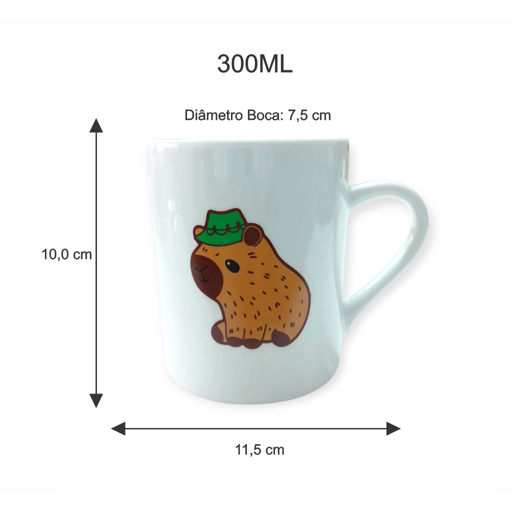 Caneca De Porcelana 300ml Capivara Fofa Chapéu Criativa Branco Emojis