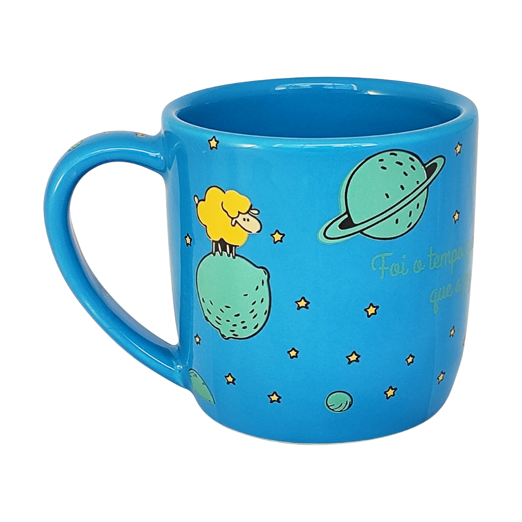 Caneca Porcelana 350ml Azul Celeste Club Pequeno Principe Café Chá Cappuccino