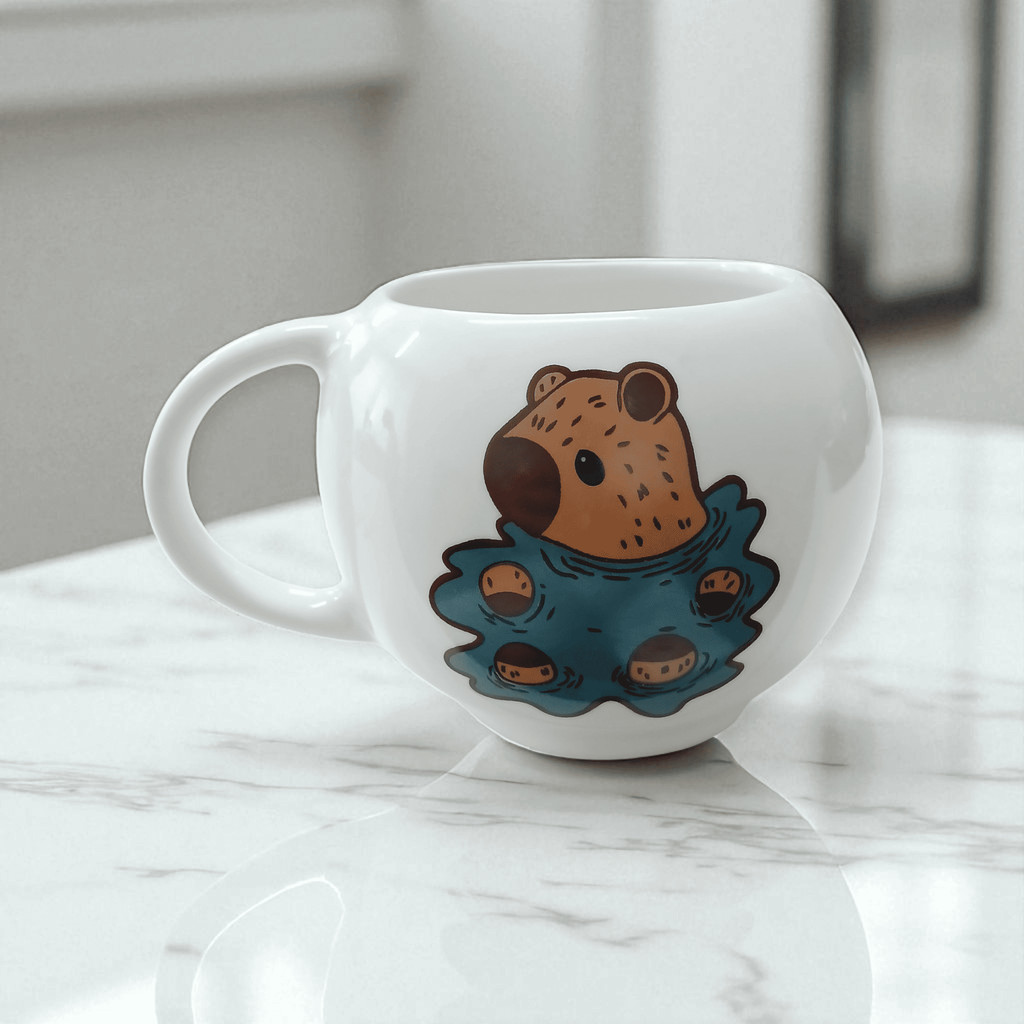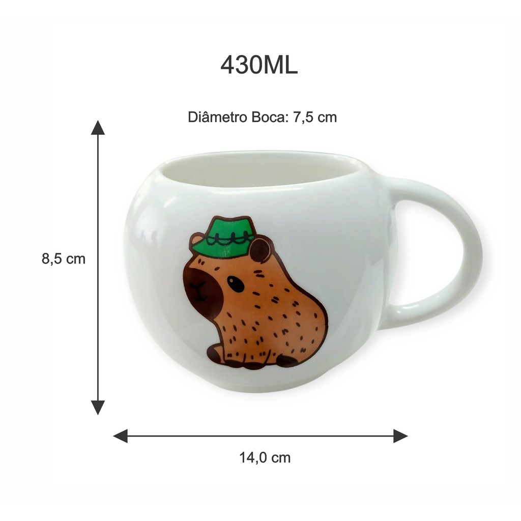 Caneca Porcelana 430ml Capivara Fofa – Café, Chá e Presente Criativo