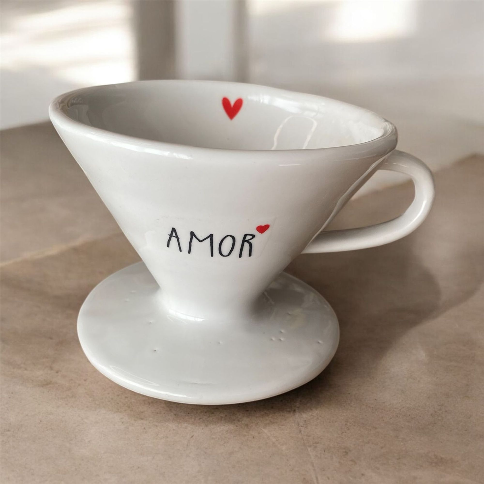 Filtro de Café de Porcelana Branca Decorado - Amor