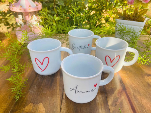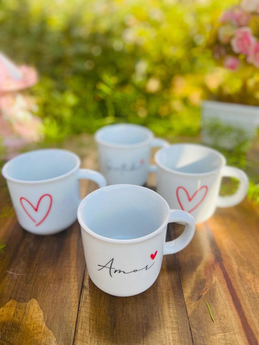 Jogo 4 Canecas Xícaras Ágata Porcelana 200 Ml Café Chá