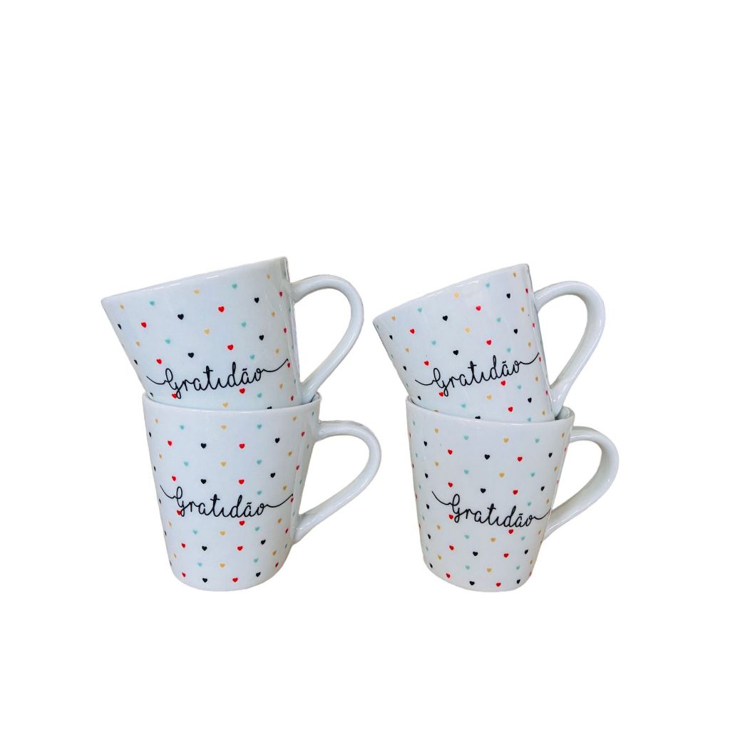 Jogo 4 xícaras Branca Café Chá Porcelana decoradas Gratidão Faixa