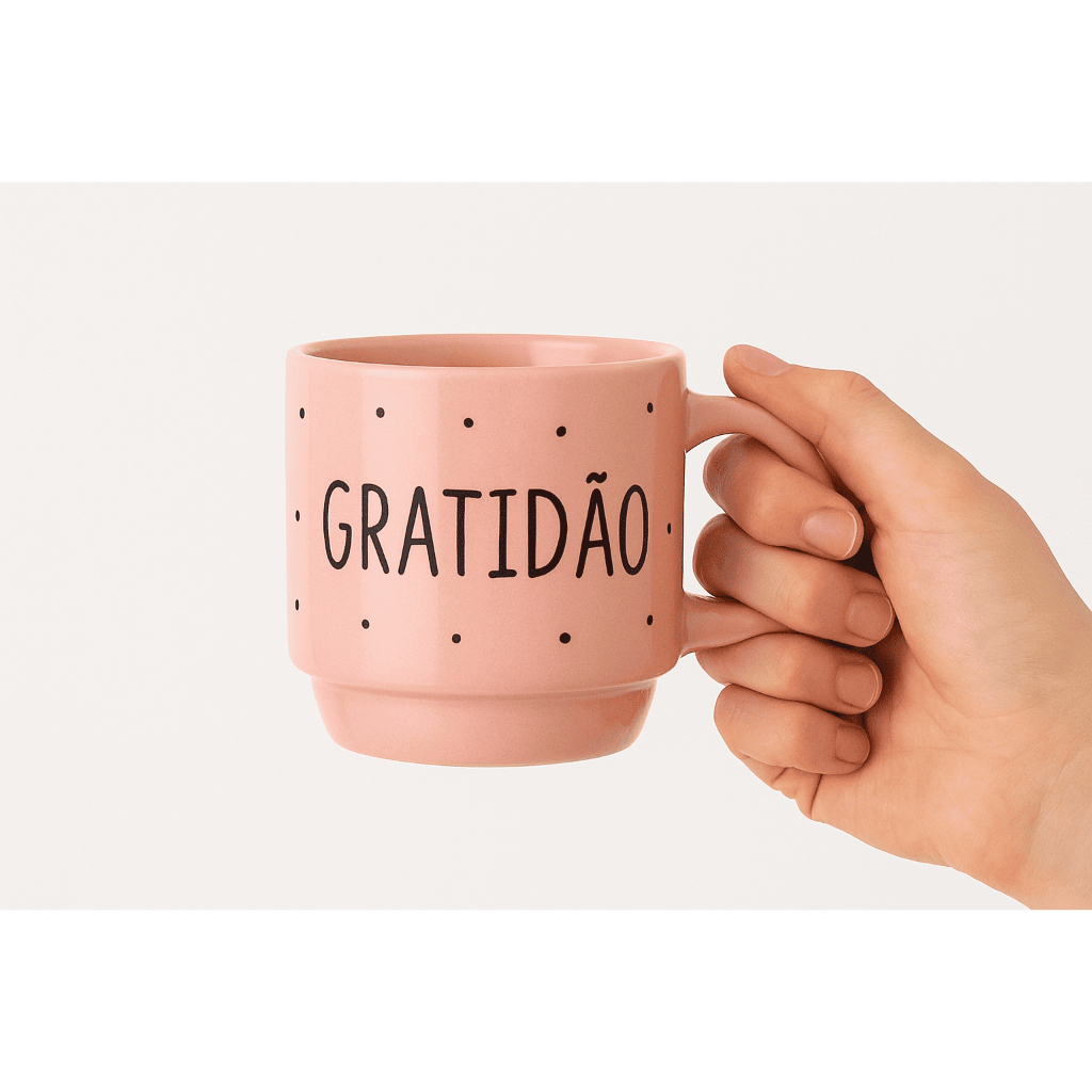 ☕✨ Deixe sua mesa de café ainda mais especial com este lindo jogo de 4 xícaras em porcelana com suporte metálico.Cada xícara possui uma mensagem inspiradora: Gratidão, Amor, Seja Luz e Tenha Fé – perfeitas para começar o dia com boas energias!✔️ Design exclusivo e moderno✔️ Empilháveis com suporte em metal → praticidade e organização✔️ Ideal para café, chá ou cappuccino✔️ Ótima opção de presente criativo e especial? Ficha TécnicaQuantidade: 4 xícaras + suporte metálicoCapacidade: 200ml cadaAltura (xícara): 7,0 cmLargura (com alça): 11,5 cmDiâmetro da boca: 8,5 cmMaterial: Porcelana + Suporte metálicoCor: Rosa com frases motivacionais? Dica: além de funcionais, as xícaras decoram sua cozinha e são perfeitas para presentear alguém especial!