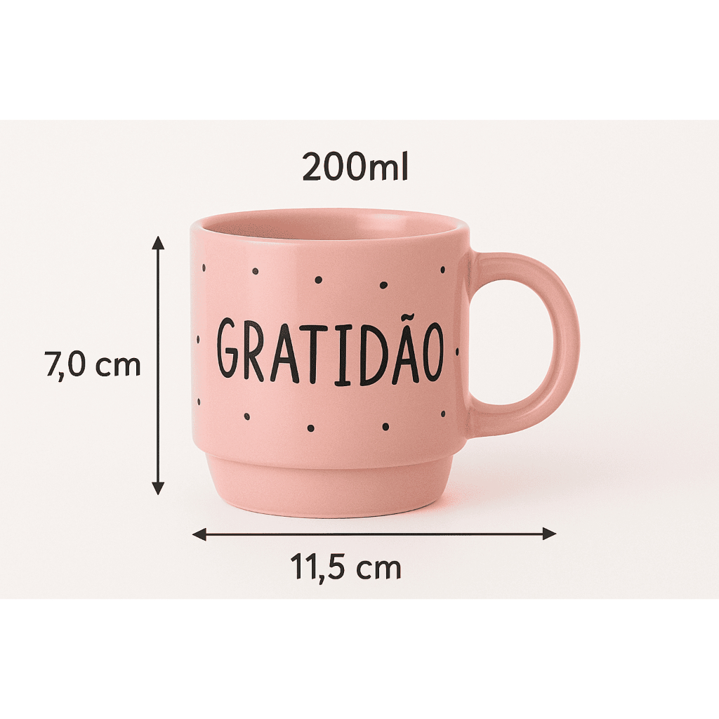 Jogo 4 Xícaras Rosa Poá Porcelana 200ml com Suporte | Gratidão Amor Fé Café Chá Presente