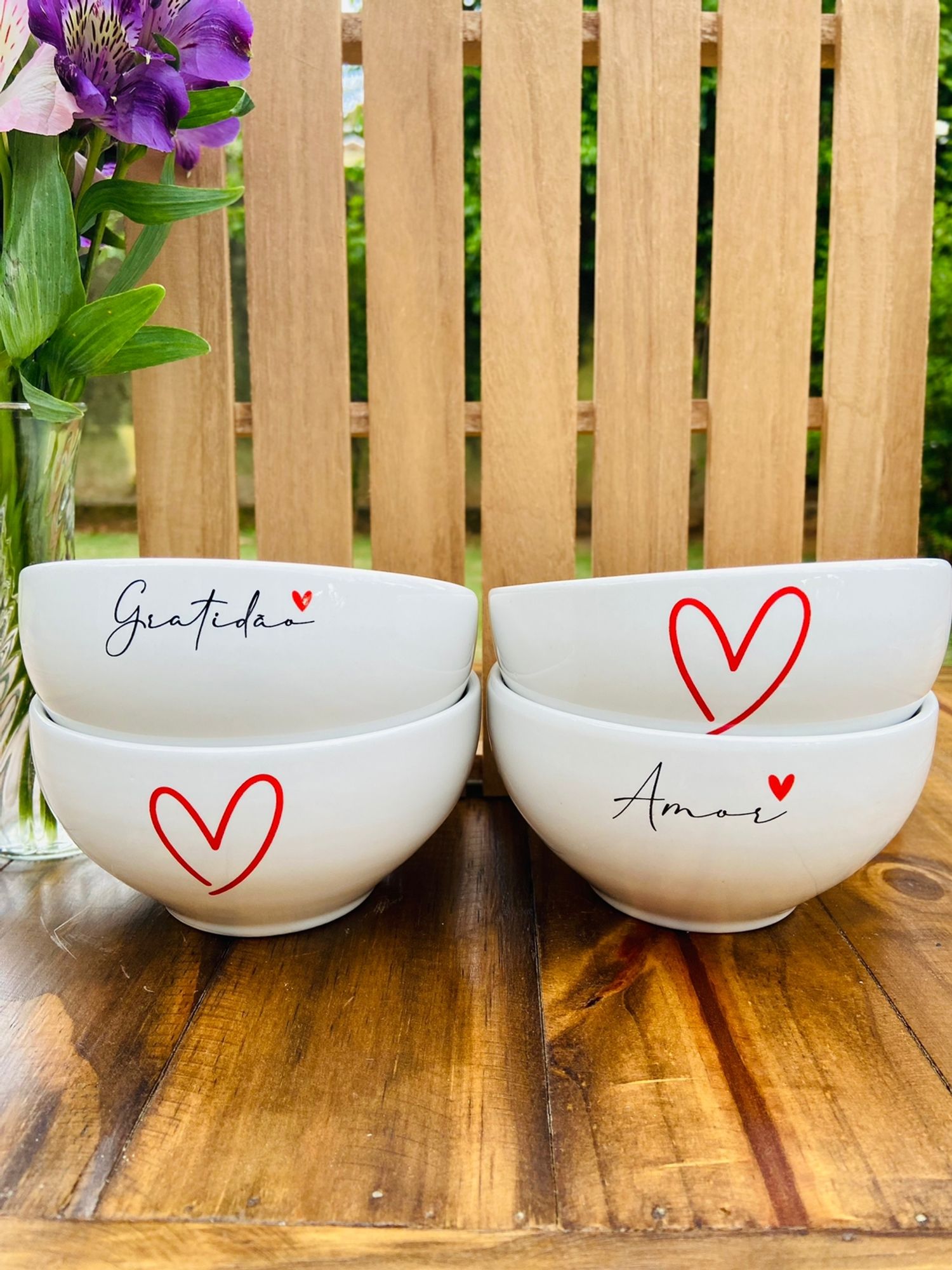 Jogo 6 Bowl Tigelas Porcelana Cumbuca Sopa Açaí Decorada