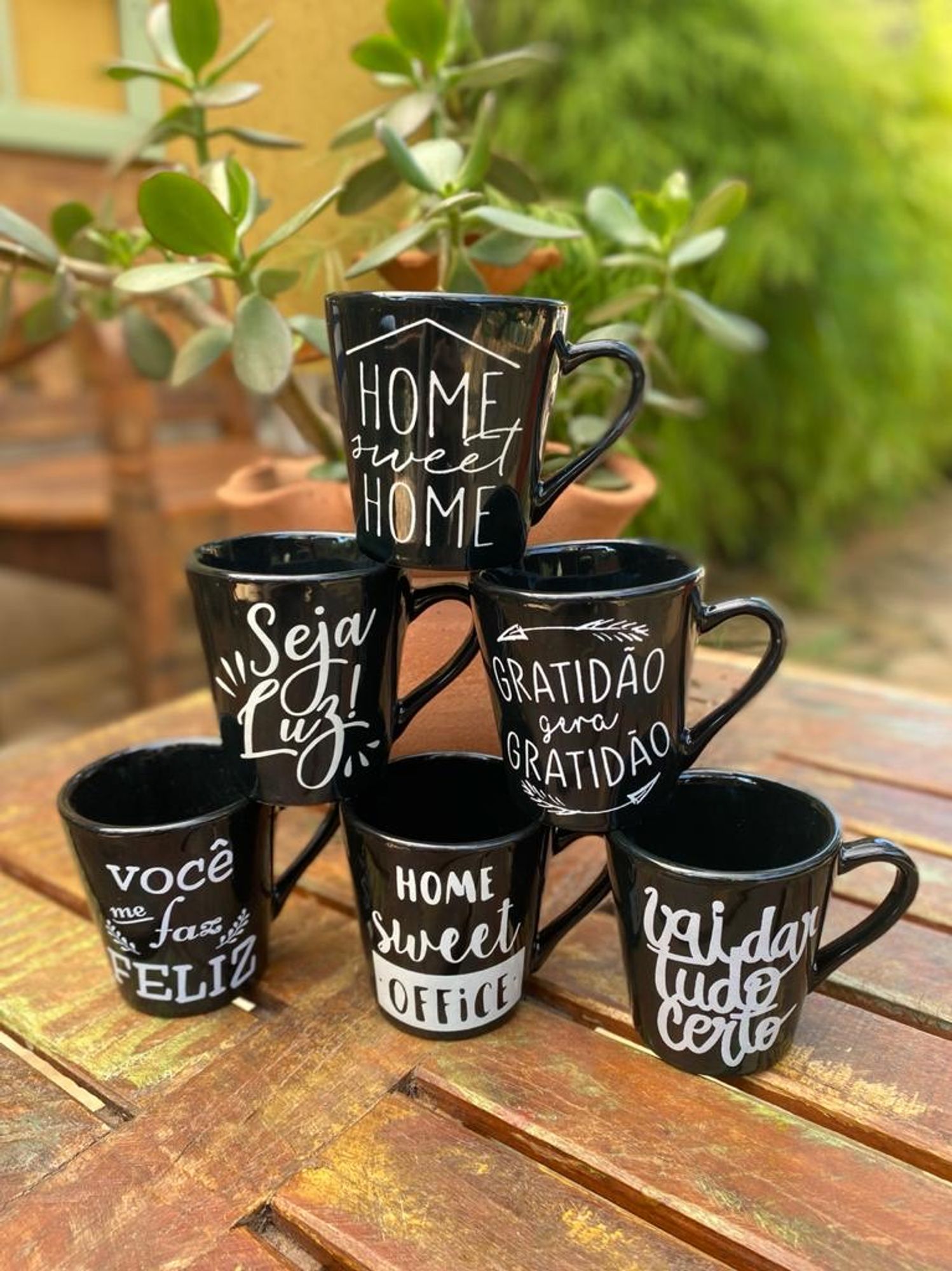 Jogo com 6 canecas modelo Tulipa com capacidade de 120ml , material em porcelana esmaltada na cor preta e decorada com frases em letras brancas . Nossos produtos são desenvolvidos com alto padrão de qualidade . Esse kit é uma ótima opção para presentear aquela pessoa que ama um bom café. O produto é de alta resistência e pode ir ao microondas . Descrição : Quantidade: 6 canecas Caneca Tulipa 120 ml na cor preta. Capacidade: 120 ml Altura: 8 cm Diâmetro : 6 cm Material: Porcelana Decorada em letras brancas. EMBALAGEM Os produtos são embalados com muito cuidado para que você receba seu pedido em perfeito estado. Se mesmo assim sofrer algum dano durante o transporte, não se preocupe! É só entrar em contato conosco ;) Produto 100% Nacional