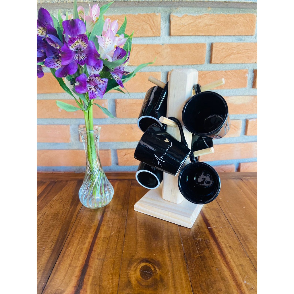 Lindo jogo de seis xícaras decoradas e suporte em madeira pinus.☕❤️As xícaras são lindas e esse suporte em madeira deu um charme ainda mais especial ! Com certeza sua cozinha ficará ainda mais bonita com esse produto.✨Quantidade:6 xícaras 120 ml . Tamanho 8 cm altura e 6cm de diâmetro.1 suporte em madeira pinus?EMBALAGEMOs produtos são embalados com muito cuidado para que você receba seu pedido em perfeito estado. Se mesmo assim sofrer algum dano durante o transporte, não se preocupe! É só entrar em contato conosco ;)Produto 100% Nacional