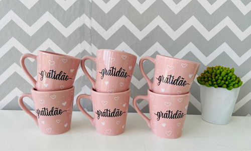 Jogo 6 Xícaras/ Canecas Porcelana Café Rosa Gratidão Kit