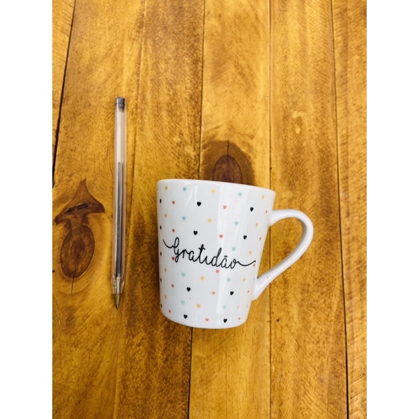 Jogo 6 Xícaras Porcelana decorada Gratidão faixa 120 ml