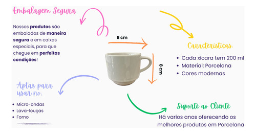 Jogo De 4 Xícara Café Chá Porcelana Com Suporte Para Xícaras