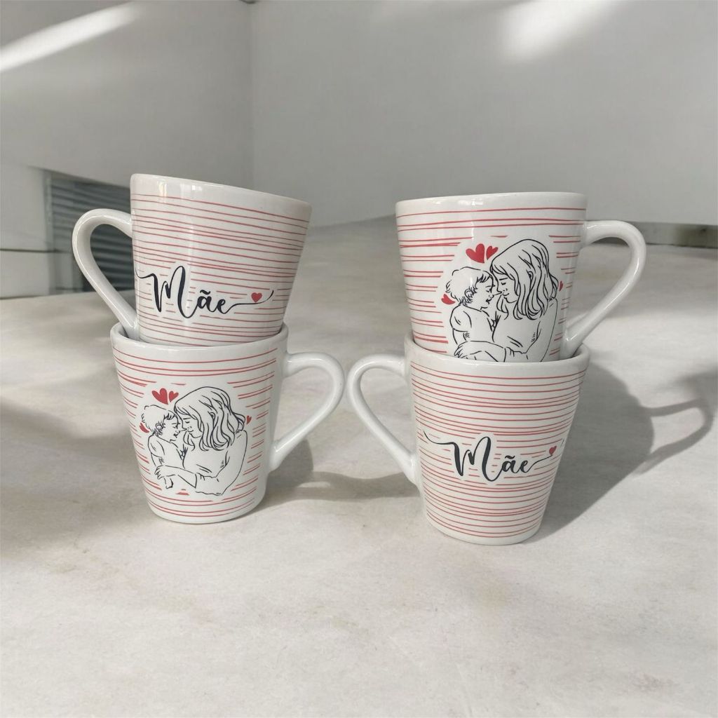 Jogo Kit 4 Canecas/ Xicaras Café Porcelana colo de mãe 120ml
