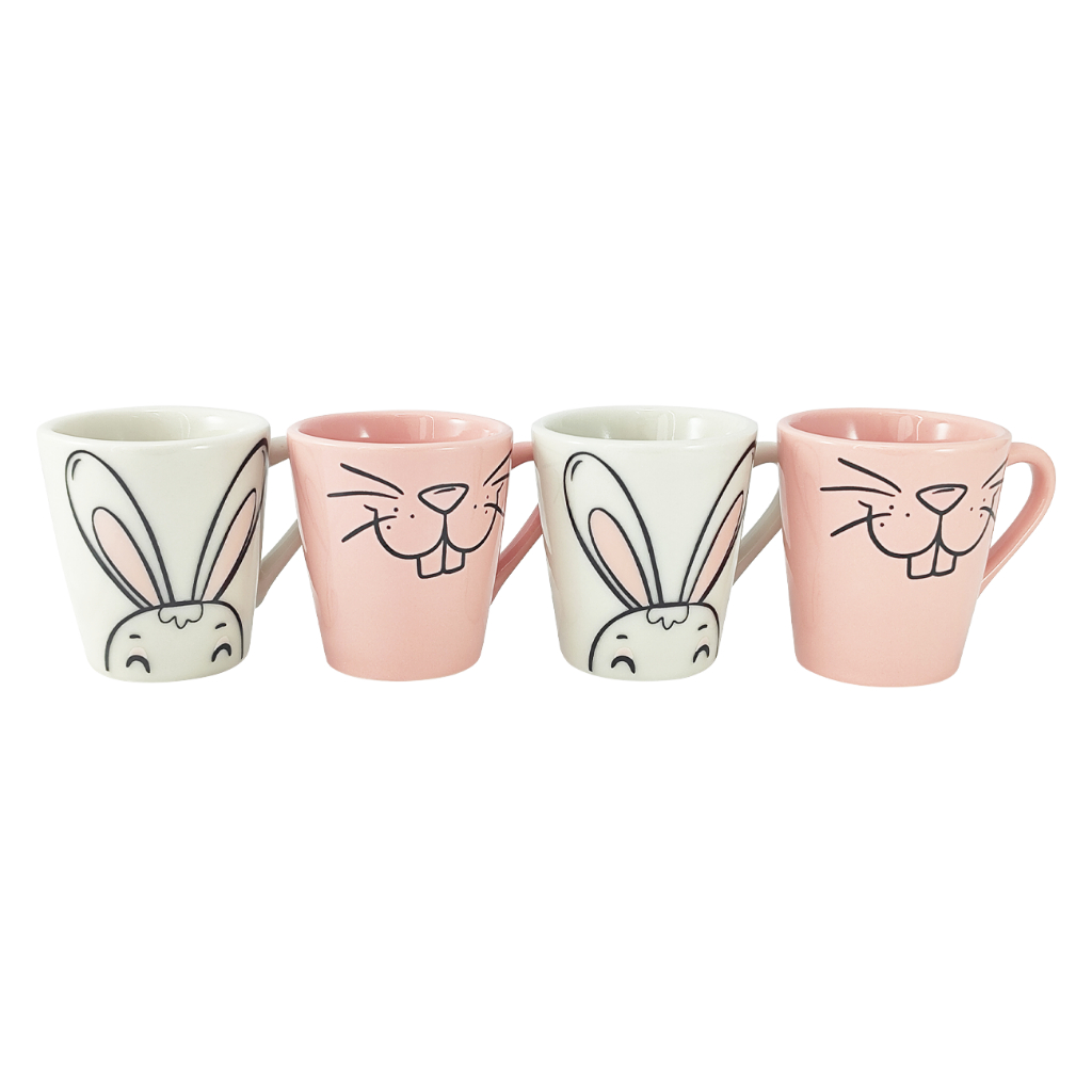 Kit 4 Canecas Tulipa Páscoa Linha Presente ? Rosa e Branca encantador para cafés com mais amor!Características do produto:✅ Conjunto com 4 canecas sortidas modelo Tulipa✅ Capacidade: 120 ml cada✅ Altura: 8 cm | Diâmetro: 6 cm✅ Porcelana rosa esmaltada com letras brancas✅ Pode ir ao micro-ondas✅ Produto 100% nacional✅ Caixa Presente Você vai receber em sua casa:? 4 canecas de porcelana decoradas (modelos sortidos)Recomendações de Uso:? Ideal para café, chá ou expresso? Aqueça com segurança no micro-ondas? Lave com cuidado para preservar a estampa? Perfeitas para presentear na Páscoa!