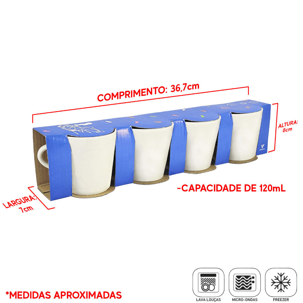 Jogo Kit 4 Xicaras 120ml Porcelana Cônica Tulipa Páscoa Sortidas com Caixa Presente