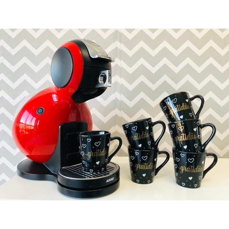 Jogo Kit 6 Xícaras Canecas Café Porcelana Preta Decorada Gratidão