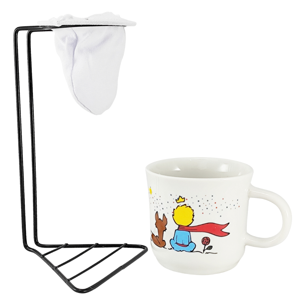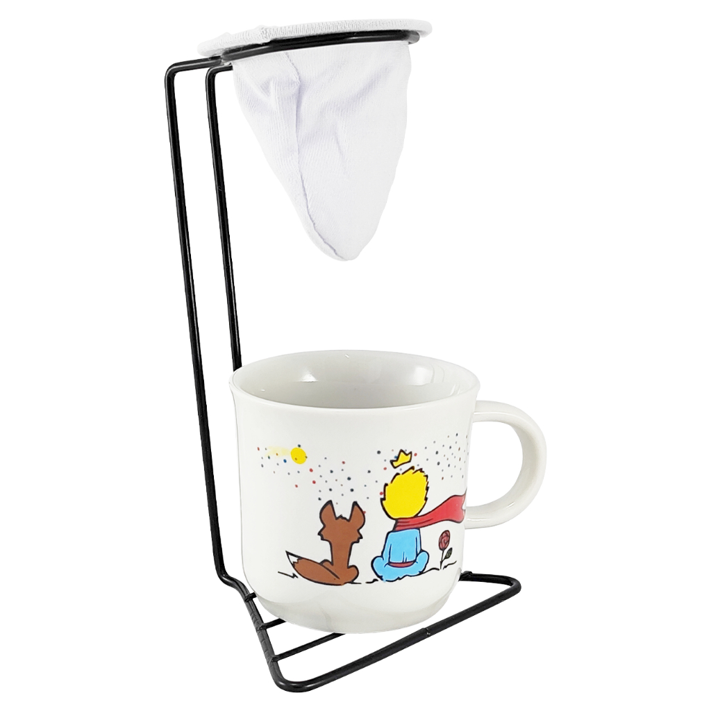 Jogo Xícara Caneca Café Chá Ágata Porcelana Pequeno Príncipe + Suporte Coador