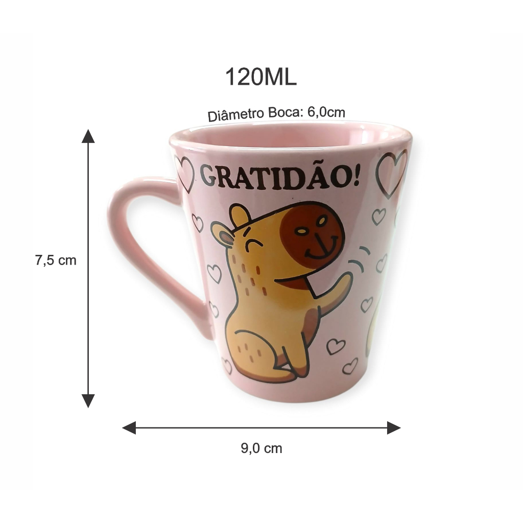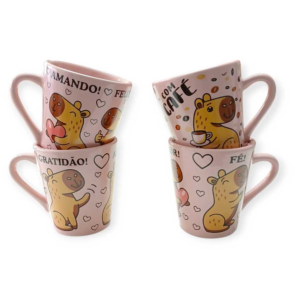 Kit 4 Caneca Xícara 120ml Rosa Estampa Capivara Divertida