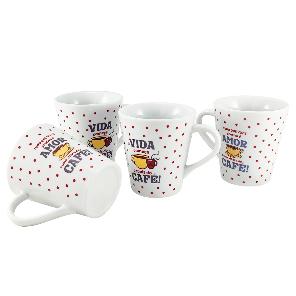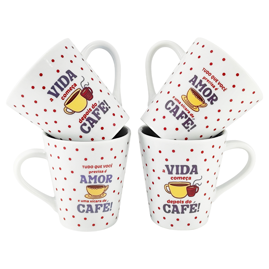 Kit 4 Canecas Porcelana Amor Café 290ml