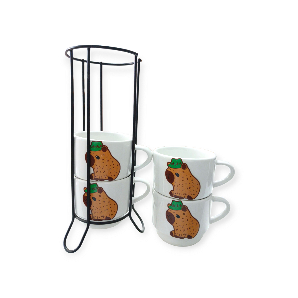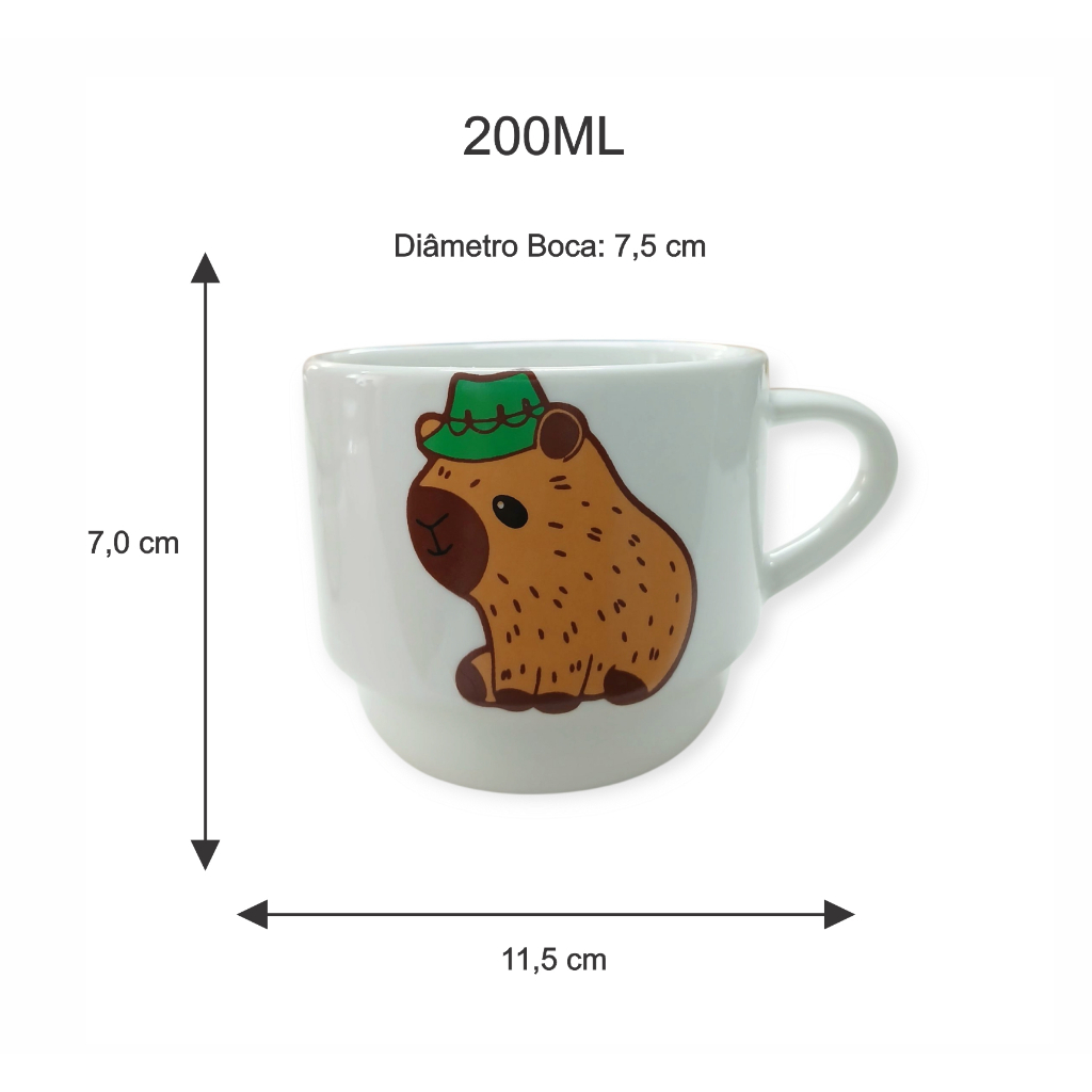 Kit 4 Canecas Xicaras Empilháveis Capivara Chapéu 200ml Sup