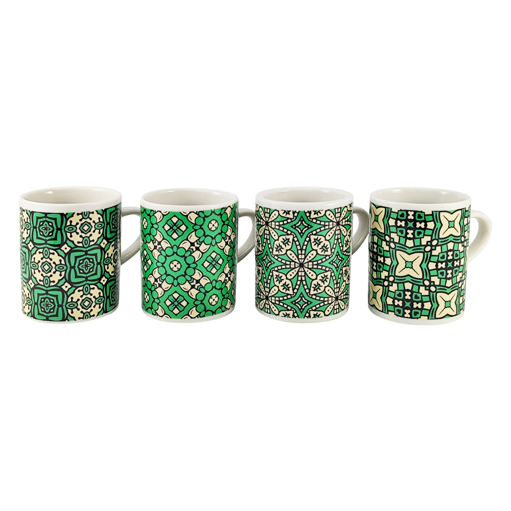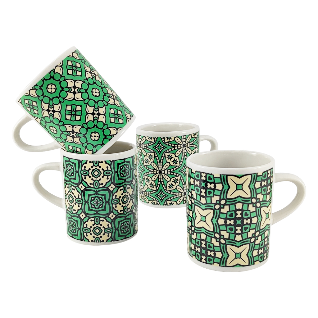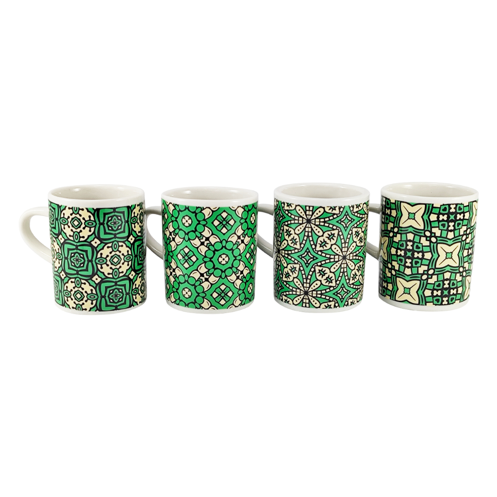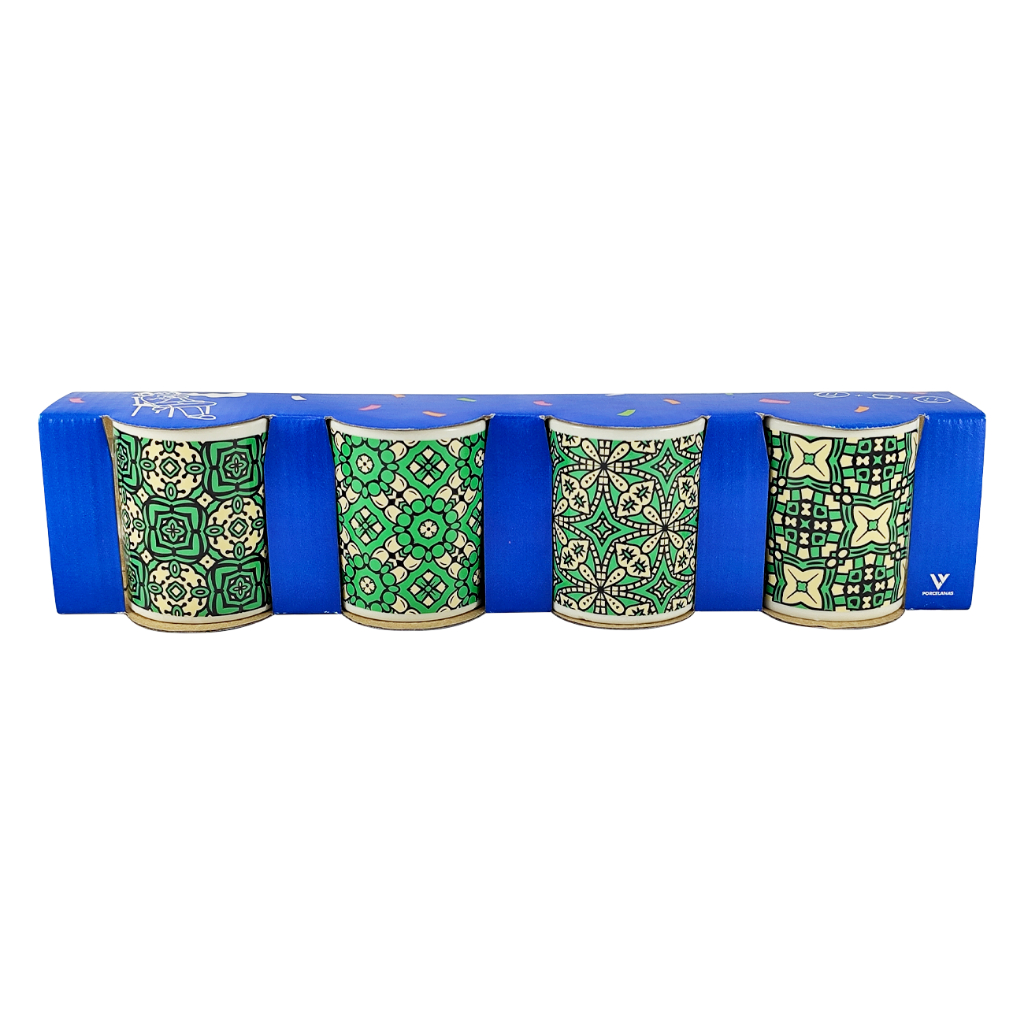 Conjunto 4 Xícaras com design em ladrilhos ☕ Simples, elegante e feito para o seu momento café!Características do produto:✅ Kit com 4 xícaras de porcelana decorada✅ Capacidade ideal: 120 ml por xícara✅ Dimensões: 7 cm de altura x 7 cm de diâmetro✅ Material resistente e sofisticado✅ Design vintage que combina com tudo✅ Caixa PresenteVocê vai receber em sua casa:? 4 xícaras decoradas em porcelana linha presenteRecomendações de Uso:? Use para café, chá ou bebidas quentes? Lave com esponja macia para conservar o brilho? Pode servir em ocasiões especiais ou no dia a dia? Armazene em local seco e arejado