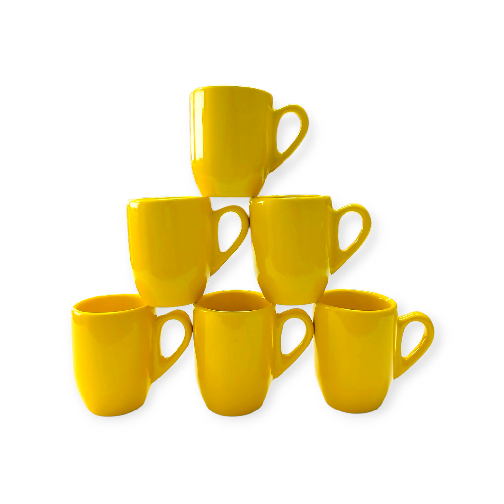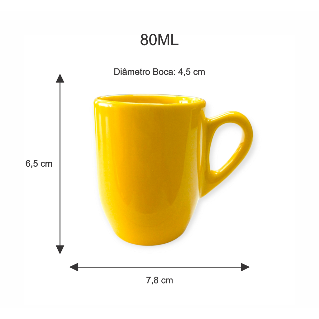 Kit 6 Xícara de Porcelana Amarela 80ml Café Expresso – Caneca Café Presente Criativo Cozinha