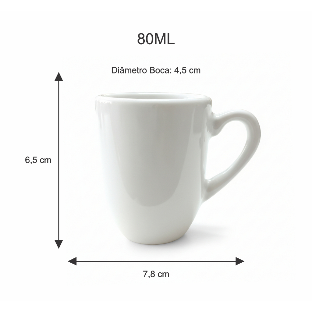 Kit 6 Xícara de Porcelana Branca 80ml Café Expresso Caneca Chá Presente Cozinha
