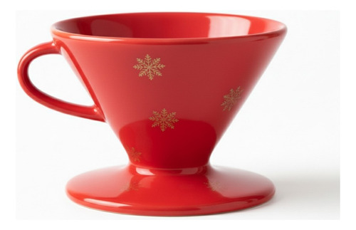 Kit Bule Coador Porcelana Natal Café Vermelho Flocos De Neve