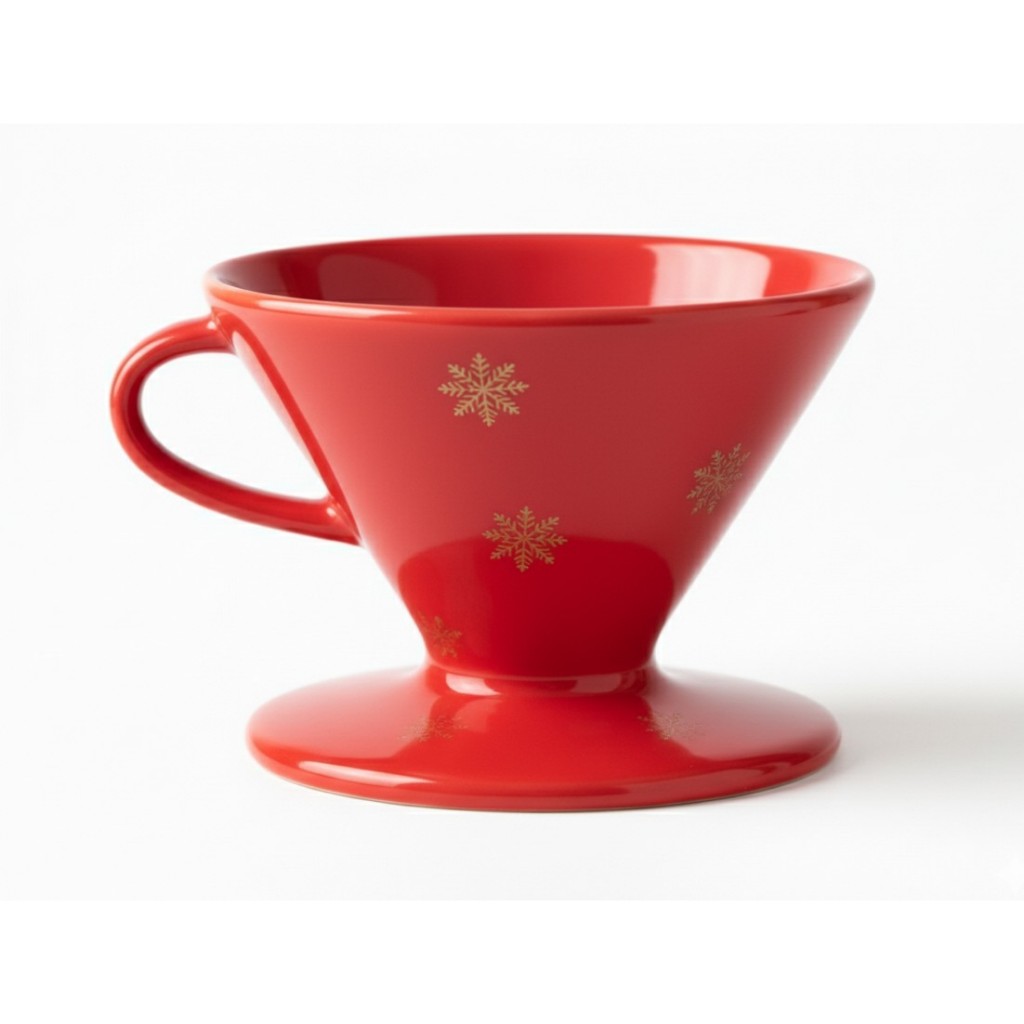 Kit Bule com Coador Filtro de Porcelana Café Chá – Vermelho com Flocos de Neve