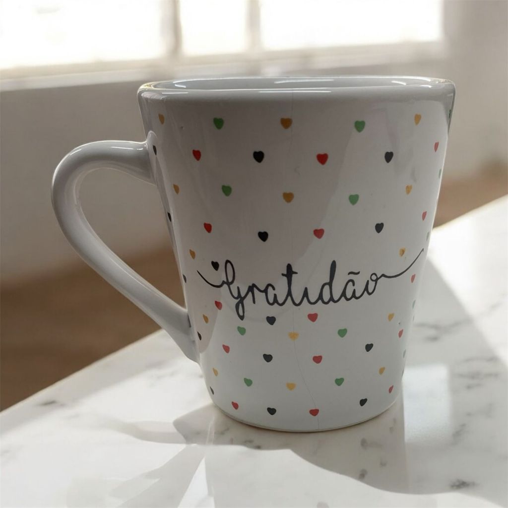 Kit Caneca Porcelana E Pratinho Ondulado gratidão faixa