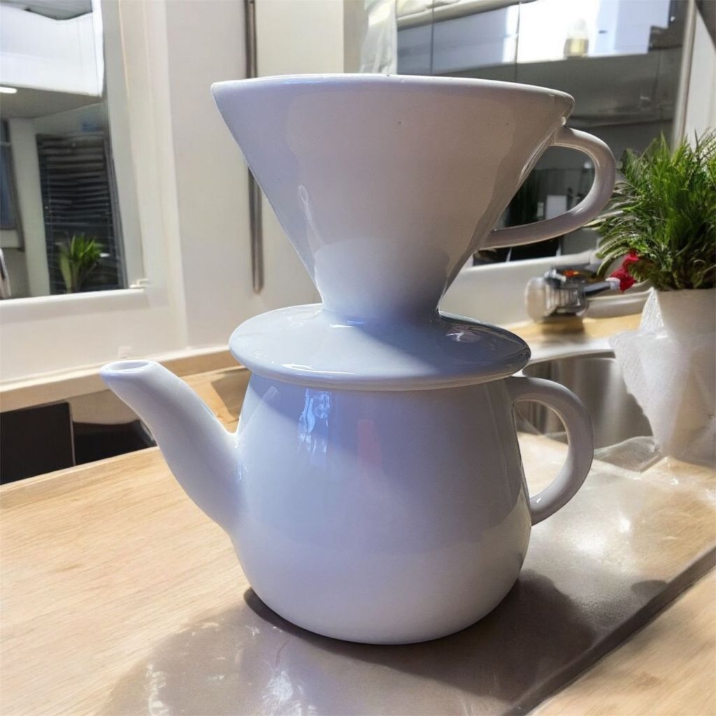 Kit Coador Filtro de Porcelana Bule De 500 ml Branco Liso Mesa Café Mesa Posta Cantinho Do Café