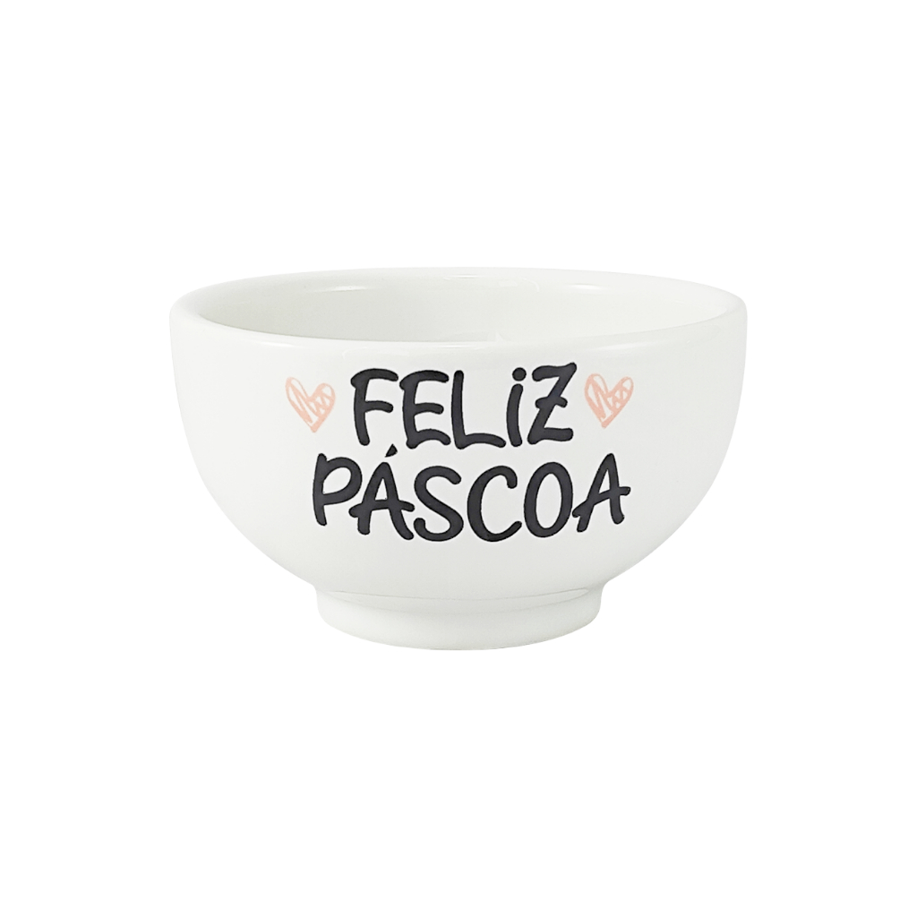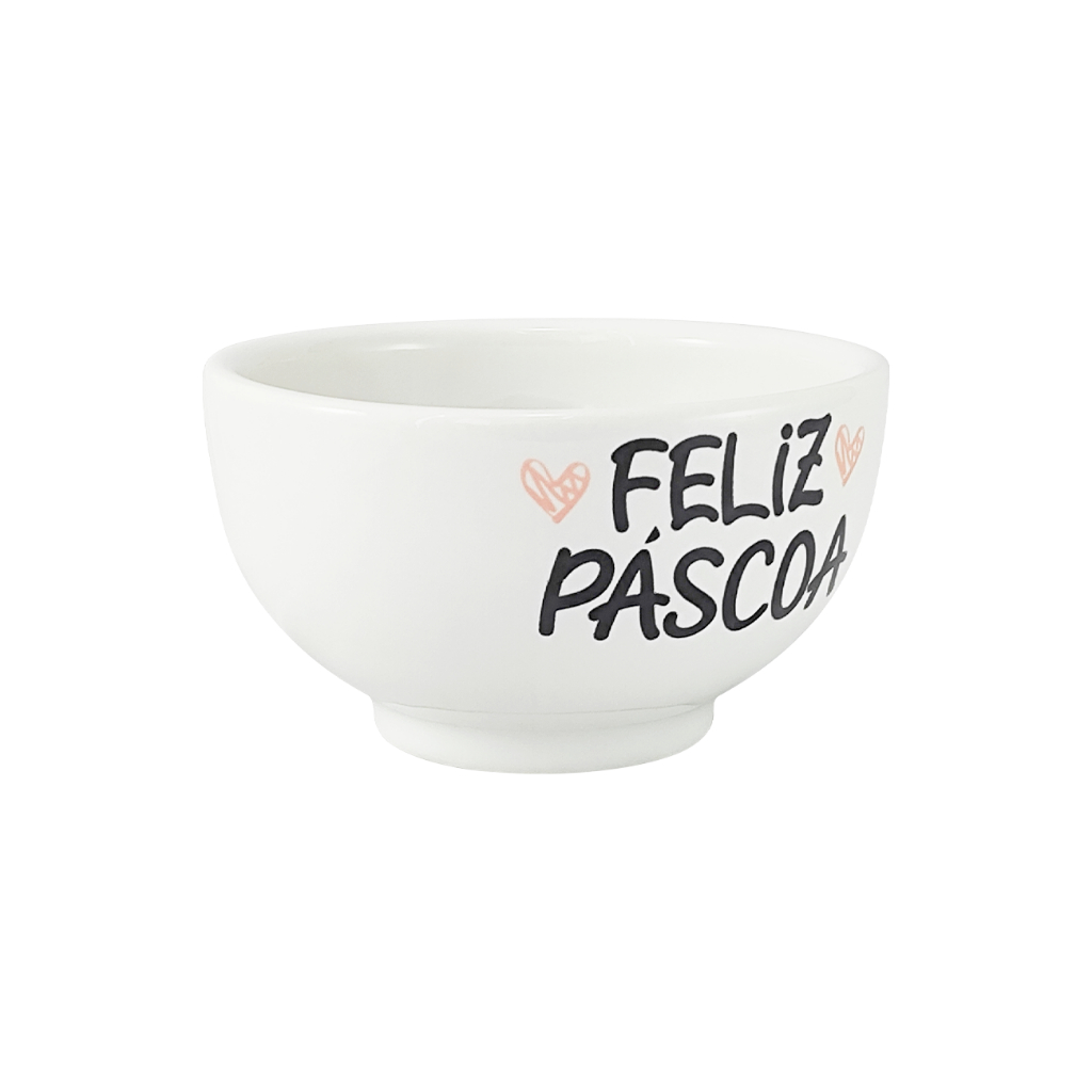 Kit Cumbuca Bowl Tigela Porcelana 450ml + 1 Caneca Ágata de 200ml Feliz Páscoa