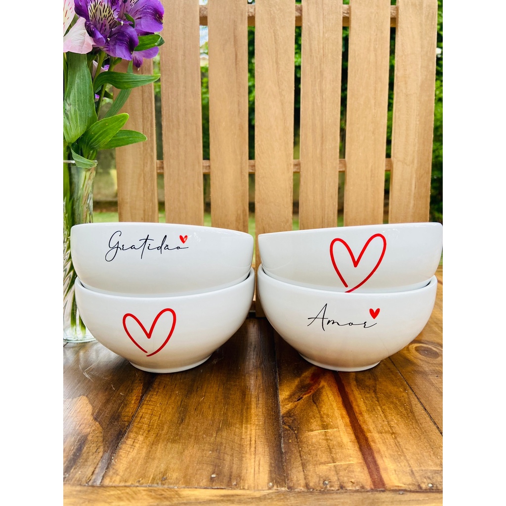Kit Jogo 4 Bowl Tigelas Porcelana Cumbuca Sopa Açaí Decorada