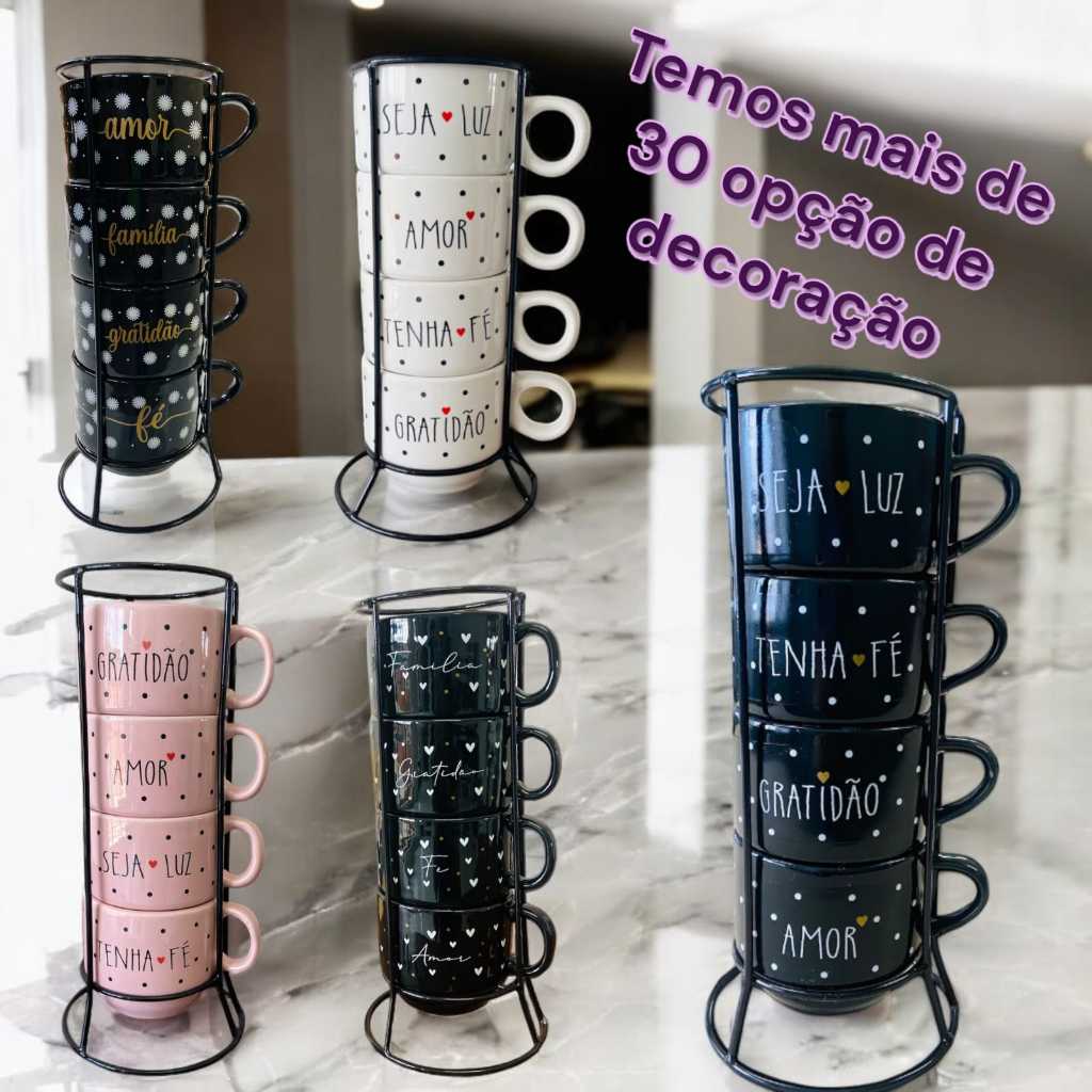 ?☕ CONJUNTO EXCLUSIVO: 4 Xícaras Empilháveis com Frases Motivacionais + Flores | 200ml | Presente Perfeito!✨ ELEGÂNCIA E INSPIRAÇÃO PARA SEU DIA A DIA!Transforme seu café em um momento especial com este conjunto encantador:✔ 4 xícaras de porcelana com frases motivacionais ✨✔ Detalhes florais delicados - beleza em cada detalhe ?✔ Práticas e empilháveis - economizam espaço na cozinha ?? CARACTERÍSTICAS:• Capacidade: 200ml (perfeito para café, chá ou chocolate) ☕?• Material: Porcelana resistente e durável• Dimensões: 7cm (altura) x 8cm (diâmetro)• Inclui suporte de metal (25cm) - organização garantida!• Multiuso: Pode ir ao micro-ondas e lava-louças ♨?? PRESENTE IDEAL PARA:• Dia das Mães, aniversários ou amigas secretas ?• Quem ama decoração com significado ?• Quer tornar o café da manhã mais inspirador ?