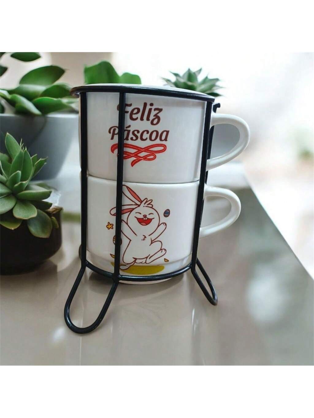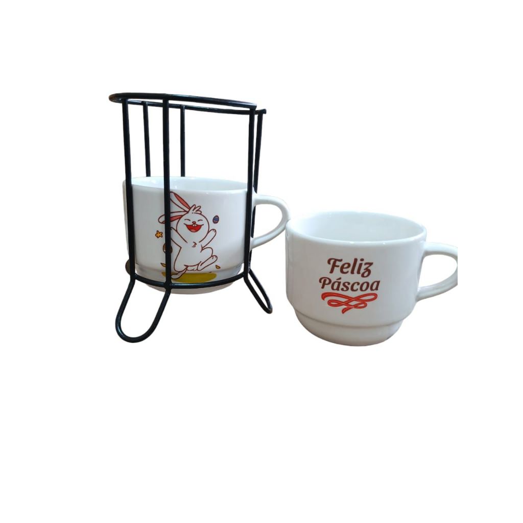 Páscoa Com uma capacidade de 200 ml, são perfeitas para café, chá ou qualquer bebida quente que você ame.Características: Design Empilhável: Economize espaço com a prática funcionalidade das xícaras empilháveis. Ideal para armários pequenos e organização eficiente.Detalhes delicados que adicionam um toque de beleza e elegância à sua mesa.Descrição:Quantidade: 2 xicarasCapacidade: 200 mlAltura: 7 cmDiâmetro: 8 cmSuporte de Metal incluso, 14 cm de altura.Peças aptas para micro-ondas e lava louças.Compra Garantida: Compre com segurança e tenha a certeza de um produto de qualidade e bem embalado para sua total satisfação.Não perca a chance de adicionar um toque de inspiração e elegância ao seu cotidiano.Adquira agora o seu conjunto de xícaras de porcelana e transforme suas pausas para o café